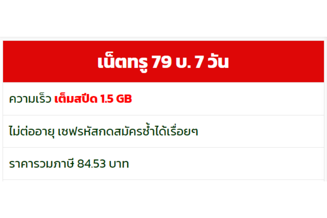 โปรเน็ตทรูรายสัปดาห์ แพ็กเกจเสริมเติมเงิน แบบกดสมัครเองได้ ใหม่ล่าสุด โปรเน็ตเสริมสำหรับลูกค้าทรูระบบเติมเงิน แบบรายสัปดาห์ หรือ 7 วันค่ะ มีให้เลือกแบบหลากหลายทั้งอินเตอร์เน็ตอย่างเดียว ไม่ลดสปีด ไม่จำกัดปริมาณแบบอินเตอร์พร้อมโทรฟรีสุดคุ้ม และยังมีเน็ตความเร็วเต็มสปีด จำกัดปริมาณอีกด้วย หากกลัวจำหรัสสมัครไม่ได้ กดเซฟไวในมือถือไว้สมัครในครั้งต่อๆไปได้เลยนะคะ แพ็กเกจไม่ต่ออายุอัตโนมัติ